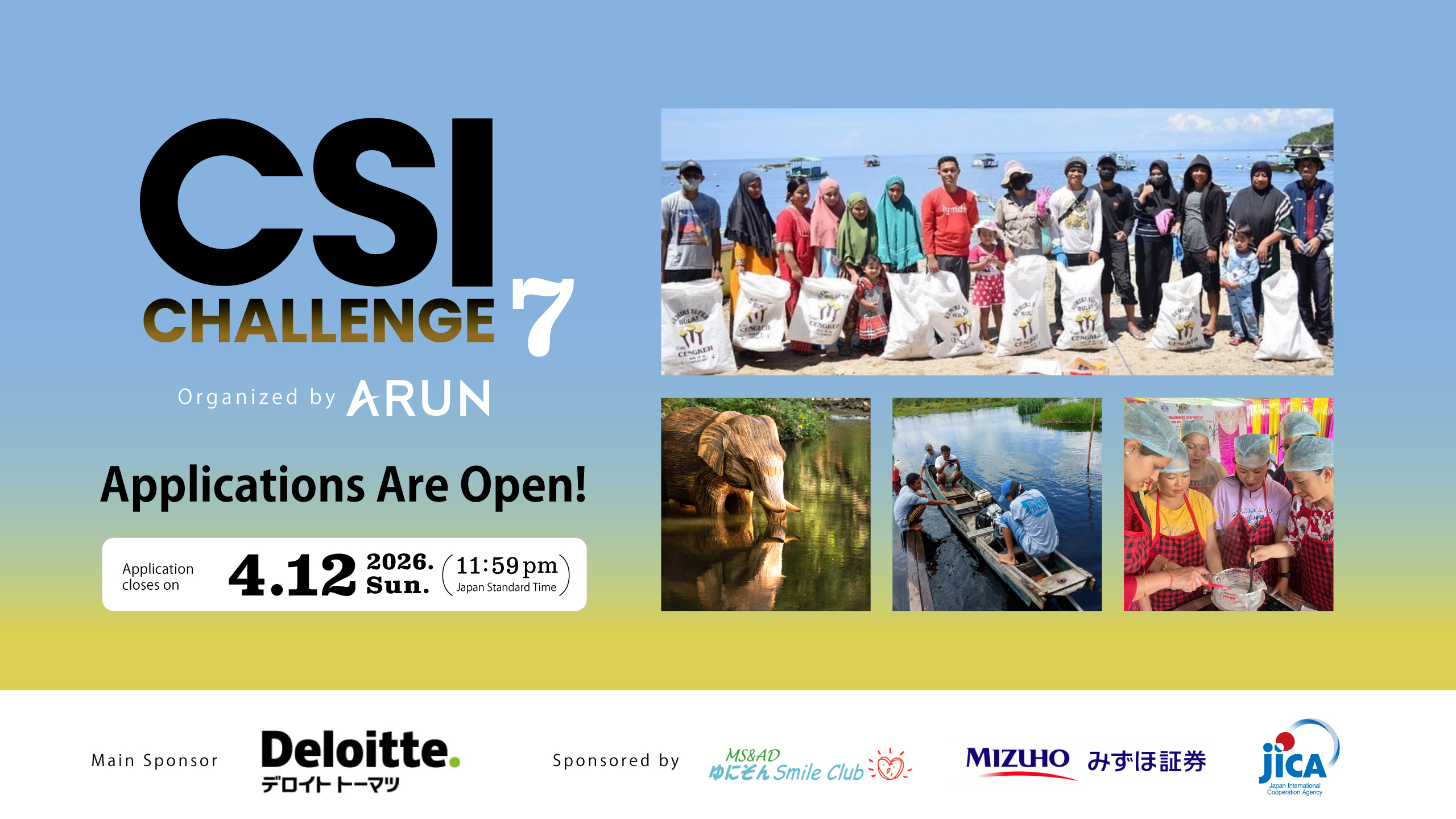 CSIチャレンジ7は、デロイト トーマツ グループがメインスポンサーとして協賛するほか、MS&ADゆにぞん スマイルクラブ、みずほ証券株式会社、国際協力機構、クラウドファンディングに参加する個人サポーターの皆様にご支援いただいております。